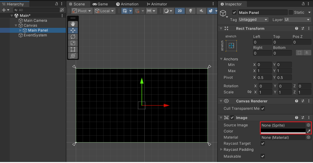 : Source Image를 None으로, Color는 (0, 0, 0, 255)로 설정