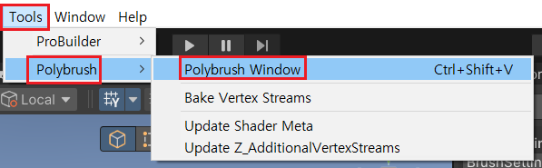 : ProBuilder는 Hierarchy 옆에, Polybrush는 Inspector 옆에 둠