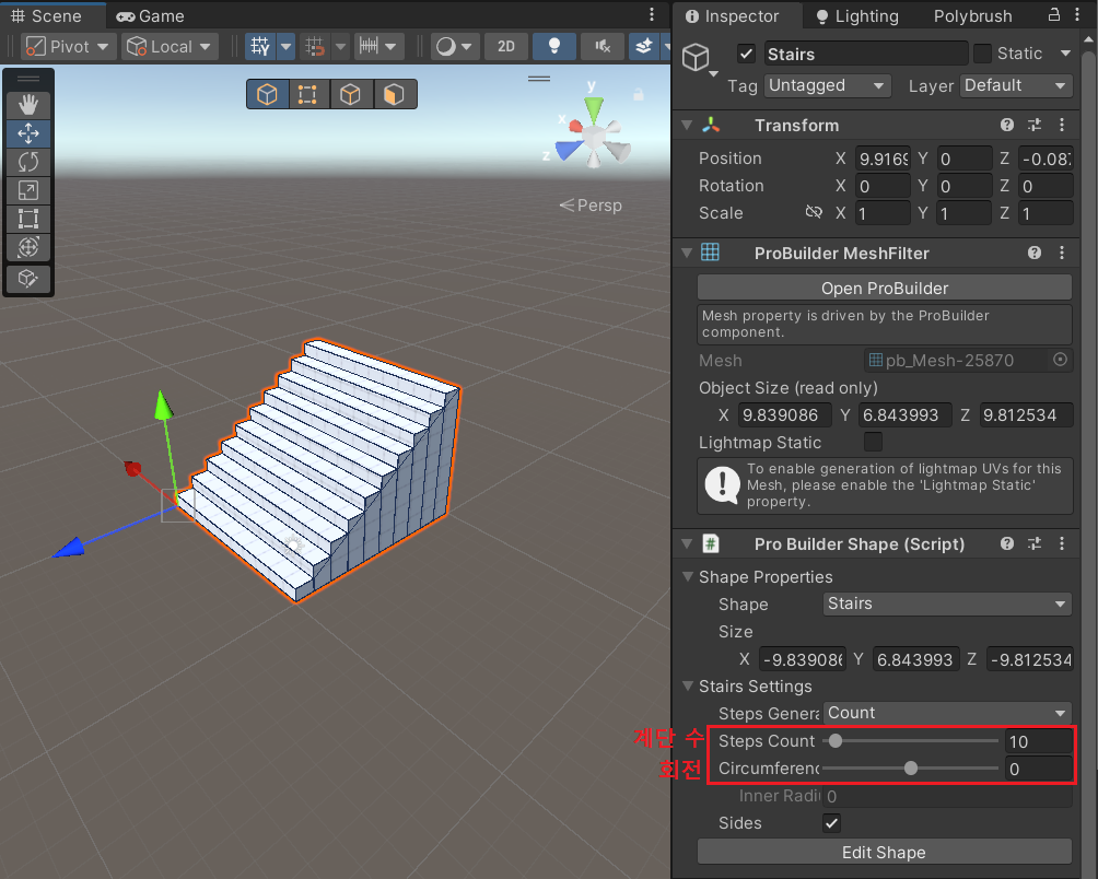 --> Inspector에서 바로 수정해도 되지만 가끔 적용이 안 될 때가 있어서 Edit Shape로 수정하기