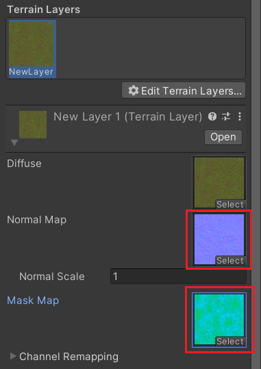 --> 'Grass_B_BaseColor' 선택 후, Normal Map과 Mask Map도 각각 맞게 선택