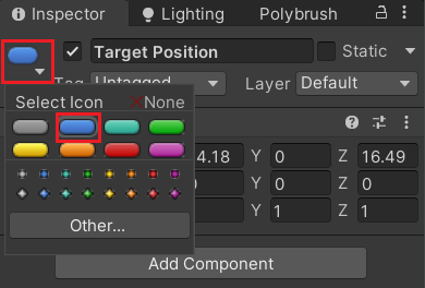 : 빈 게임 오브젝트로 'Target Position'을 생성하고 잘 보이도록 Icon을 설정한 후, Position을 옮겨준다.