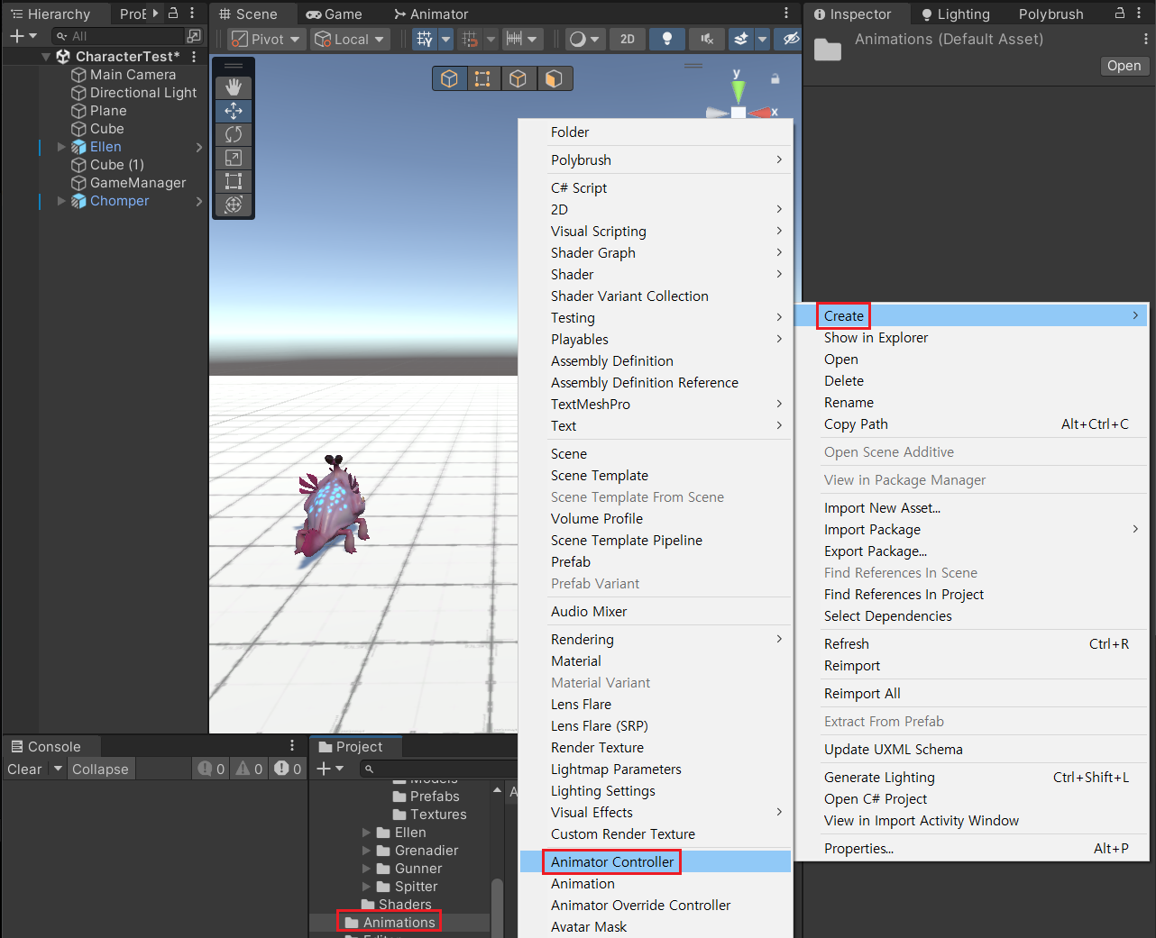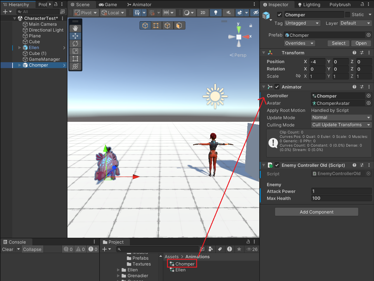 : 이름은 'Chomper' --> 생성한 후, Chomper에 Animator Controller 바인딩