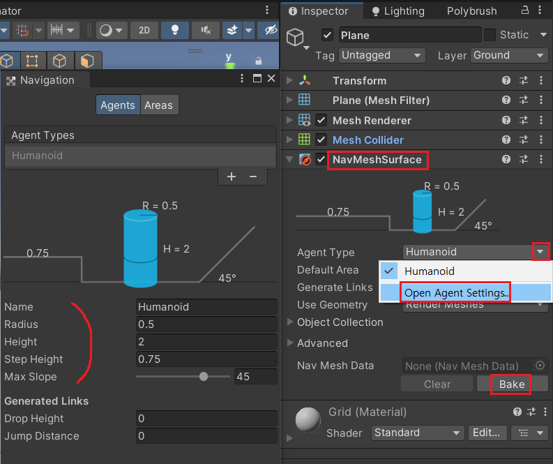 - Height : 움직일 Object가 이동할 수 있는 길을 결정해주는 높이 --> 만약 천장이 설정된 Height보다 낮다면 갈 수 없게 된다.