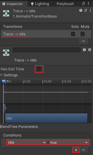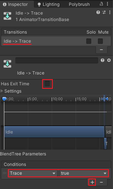 - Blend Tree를 만들어서 이름을 'Trace'로 수정