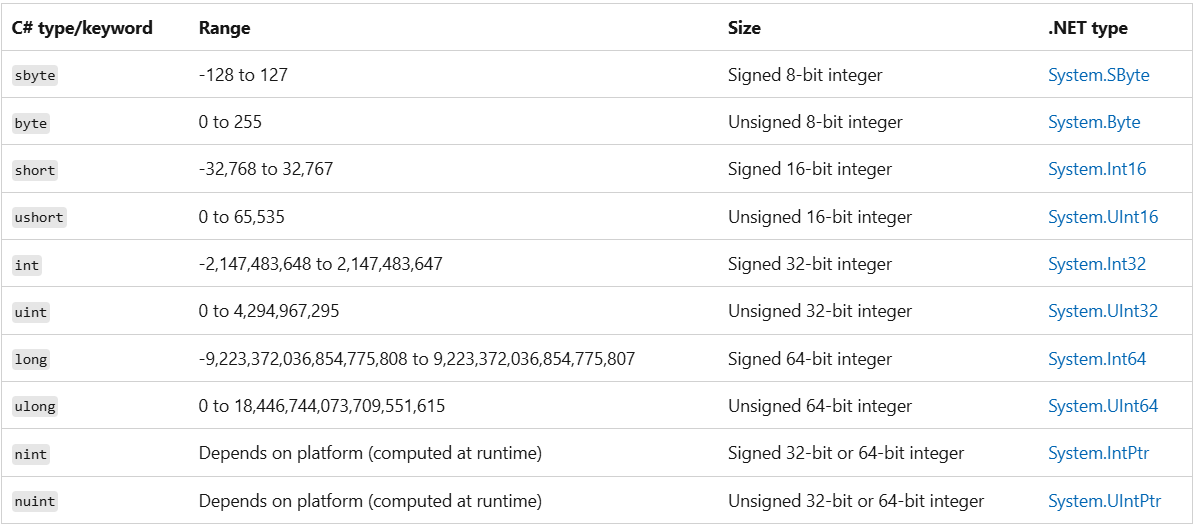 Learn the range, storage size, and uses for each of the integral numeric types.