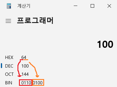 ※ 2진법으로 표현된 숫자를 4개씩 끊으면 16진법으로 빠르게 변환할 수 있다.