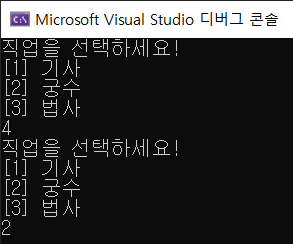 TextRPG 직업 고르기